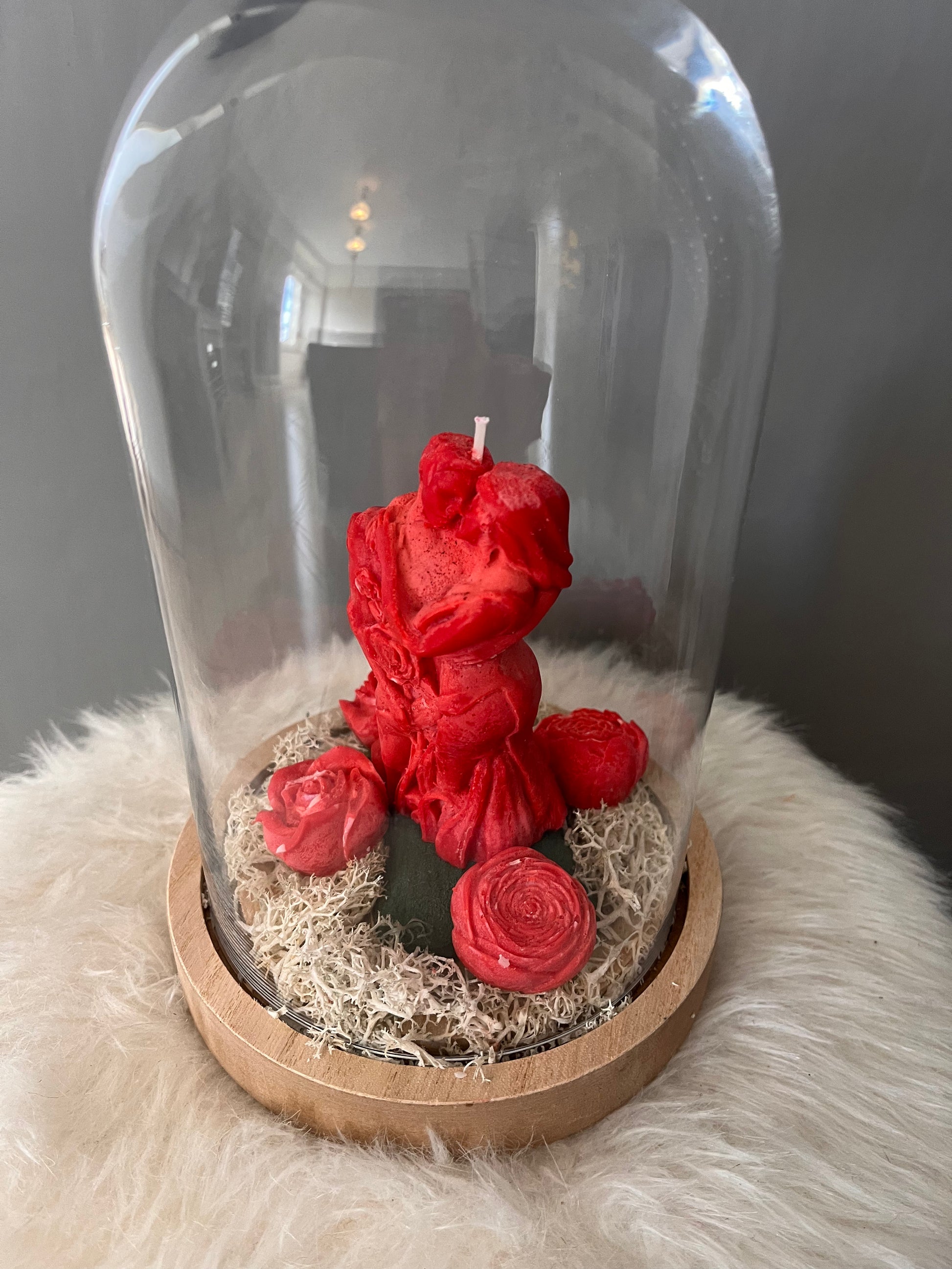 Couple sous cloche accompagner de quatre petite fleurs sur une mousse !